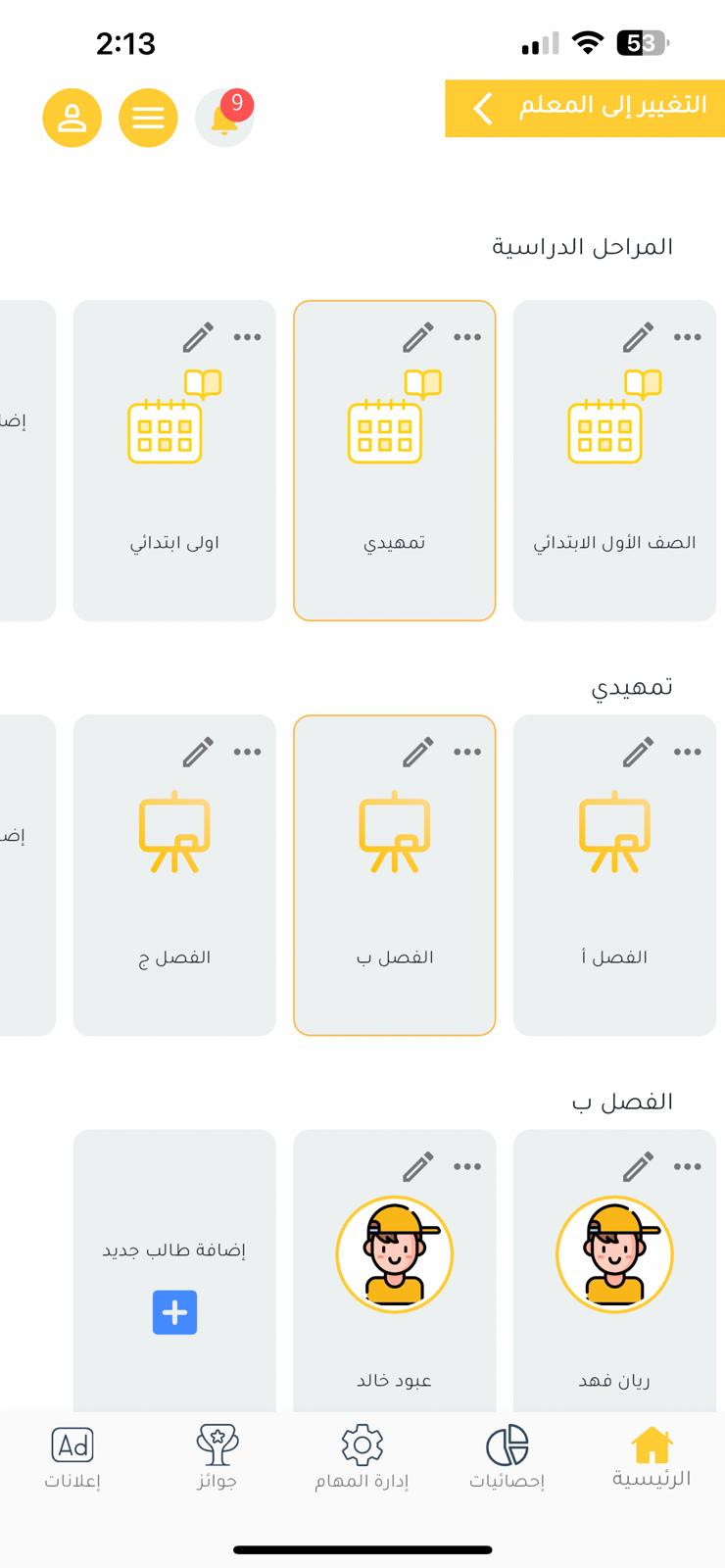 يساعد في إدارة الفصول المختلفة لمراحل الدراسة