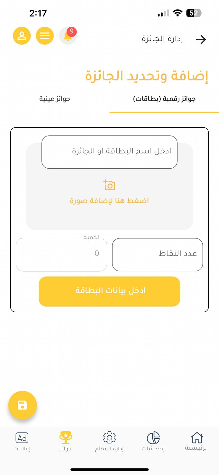 - إدارة مخزون الجوائز